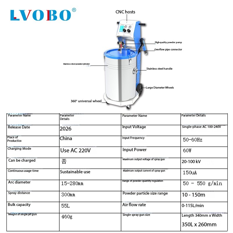 High powder coating rate: advanced electrostatic generation device, can produce stable and strong electrostatic field, ensure that powder coating is maximized adsorption on the workpiece, significantly improve powder coating rate, effectively reduce coating waste, reduce production costs.